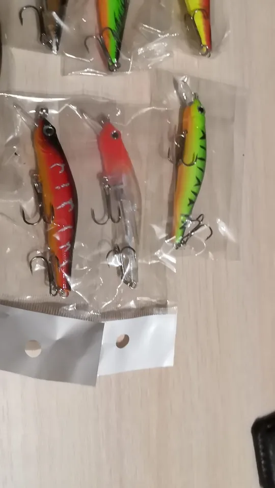 товар получил и товаром доволен .Пока не пробовал ,зима помешала,ловим на балансиры.Воблеры качественные и и недорогие,зацепок бывает много,терять приманки не люблю,но это неизбежно,но в сравнении с фирменными это не так накладно.Еще раз повторюсь хорошее качество и хорошая цена,плюс очень порядочный продавец.И не забываем поймал отпусти.