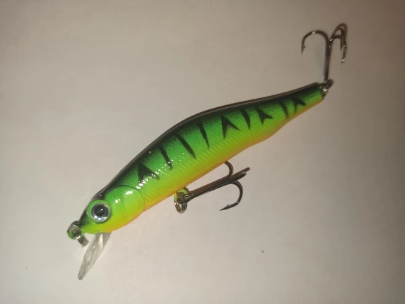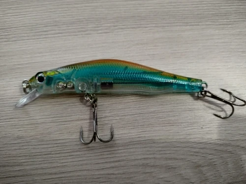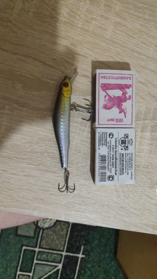 Хороший воблер за минимальные деньги. СДЗ-магнитка, да она внутри есть хоть и чуть туговата по началу. Крючки на четвёрочку, не больше и может немного великоваты. Но менять пожалуй не буду, т.к. с ними воблер медленно всплывающий. Колечки здесь обычные, диаметром 5мм. Вот их я поменяю на меньшие ф3мм. Покраска хорошая, но петли стоит проклеить. Рекомендую. 71,39 ₽.