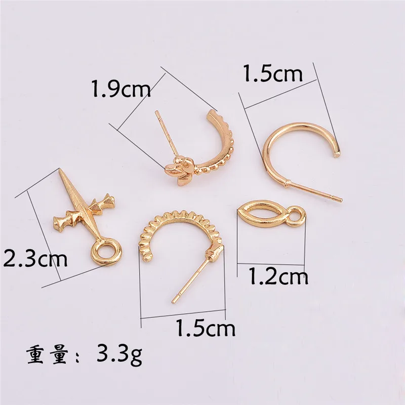 Набор женских серег, 3 шт.компл., с подвеской в виде креста, золотого цвета
