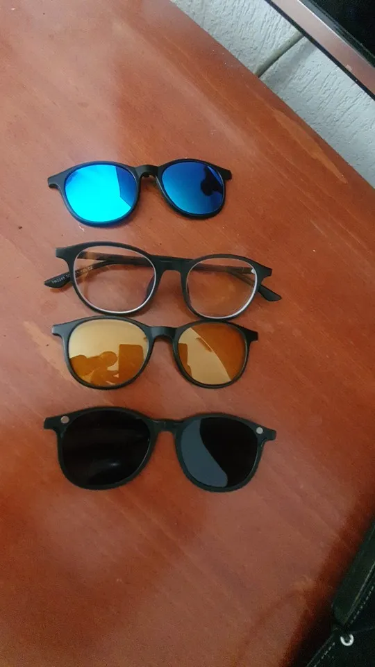 Очки прикольные. Накладки держатся хорошо. Есть зацеп на дужке переносицы и магнитики по бокам. Чехол вмещает в себя и очки и накладки. Заказывать ли оптику к ним, подумайте и взвесьте. Я отправила рецепт, мне сделали, но результат не очень. В сравнение с очками по этому же рецепту, которые у меня уже были, в этих "укачивает".