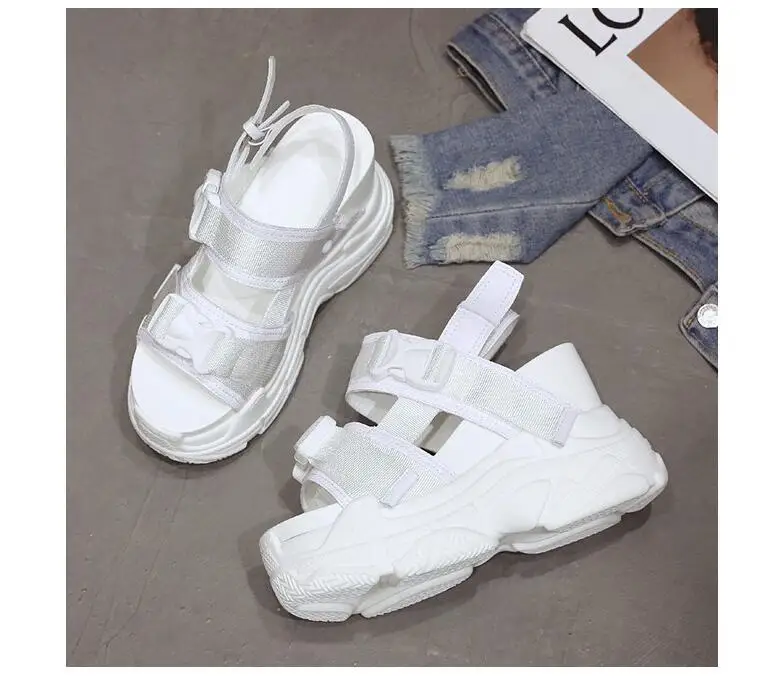 Женские босоножки на танкетке 2022 см, Повседневные Удобные белые сандалии на платформе, с пряжкой и толстой подошвой, лето 11,5