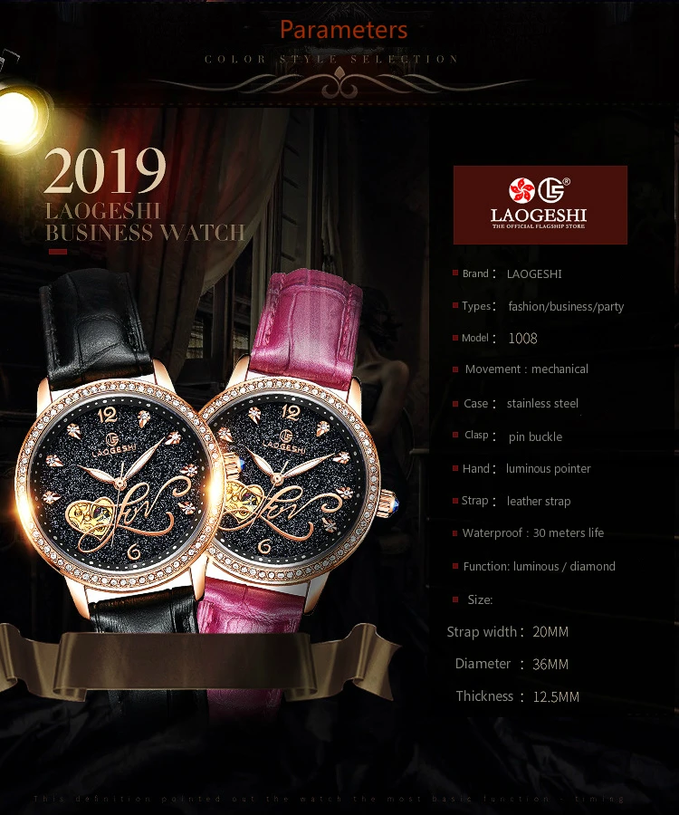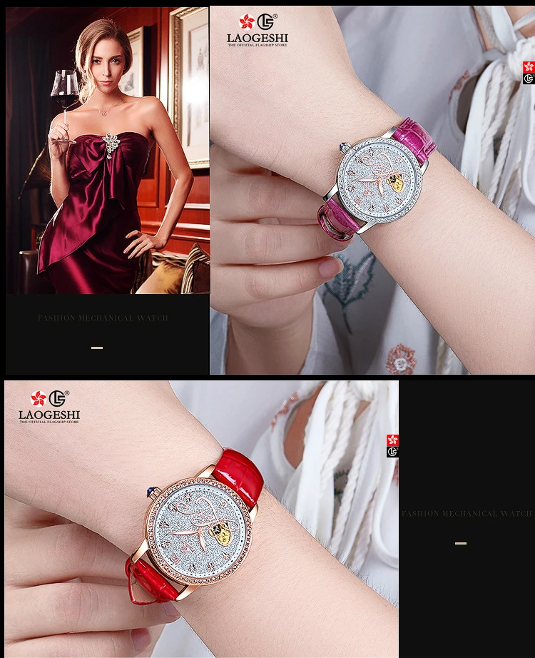 Часы наручные женские механические, брендовые Роскошные модные водонепроницаемые с кристаллами и стразами