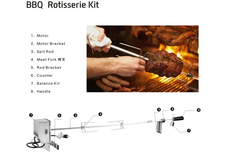Включает в себя 2 вертушки, 2 вилки для мяса, чтобы зафиксировать ваших цыплят, набор баланса и т. Д., легко установить с винтами в комплекте.