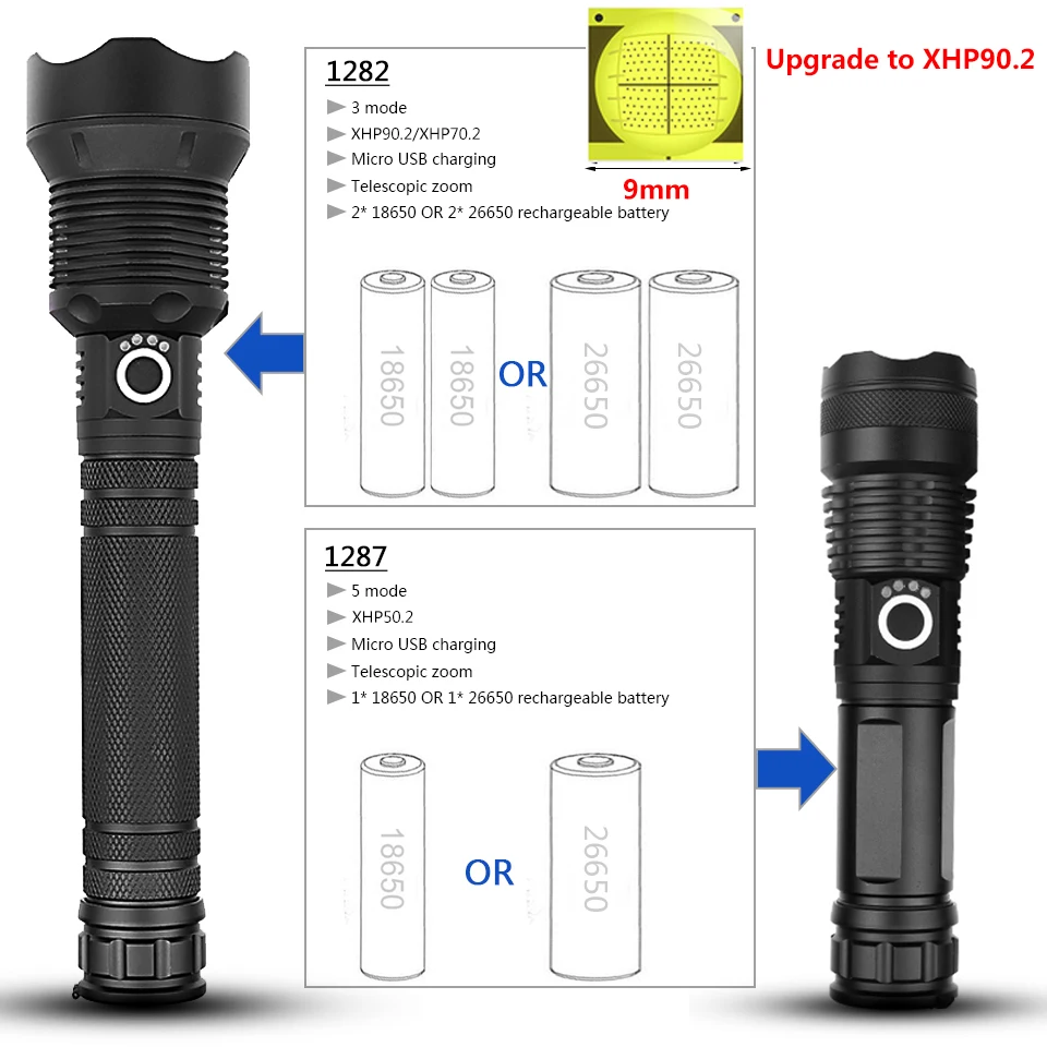 Power (XHP70.2)2* 18650 or 2* 26650 rechargeable battery