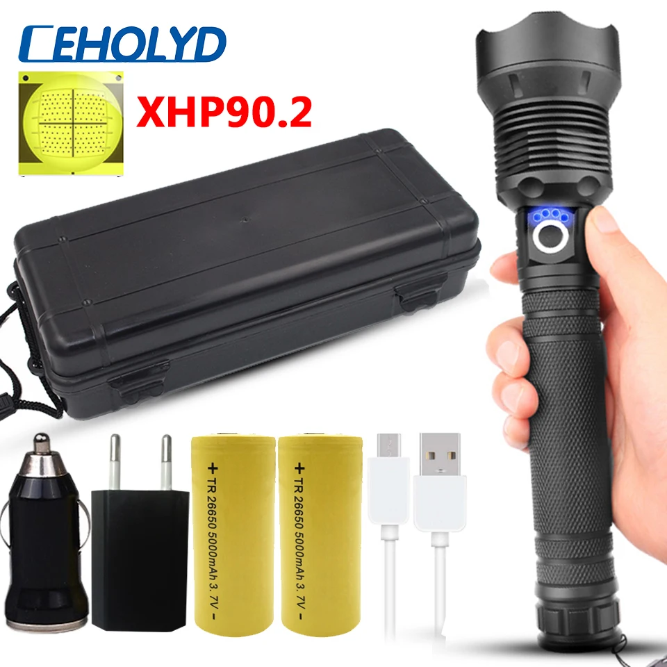 XHP90.2 Самый мощный светодиодный фонарик, масштабируемый, USB, перезаряжаемый, 18650, 26650, аккумулятор, фонарик для кемпинга, алюминиевый сплав, 30 Вт