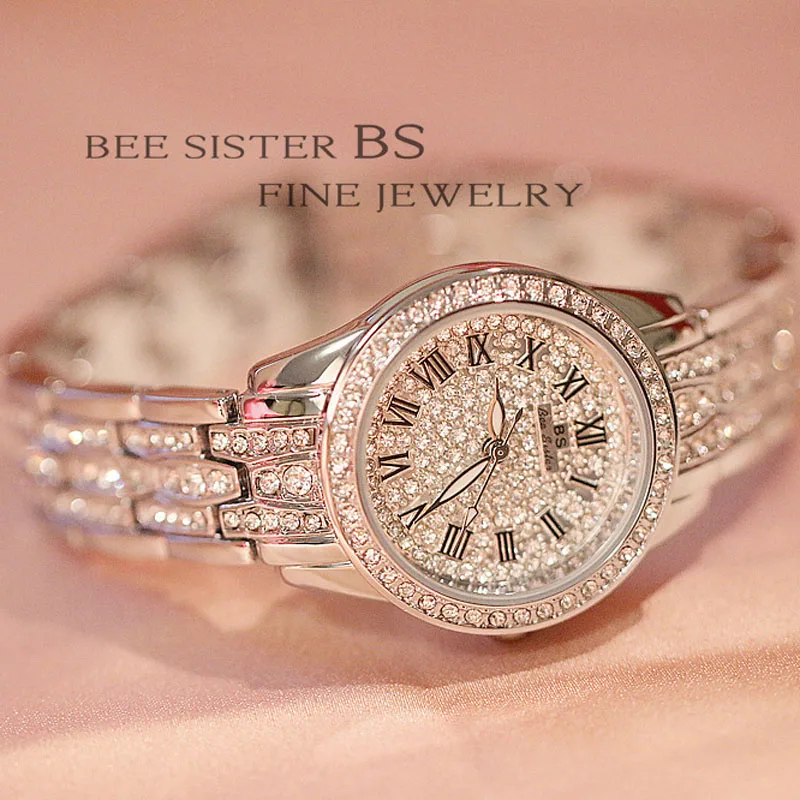 Часы наручные женские кварцевые со стразами, люксовые модные повседневные, с браслетом