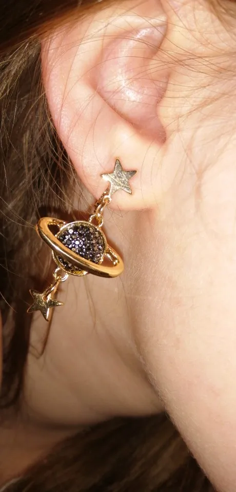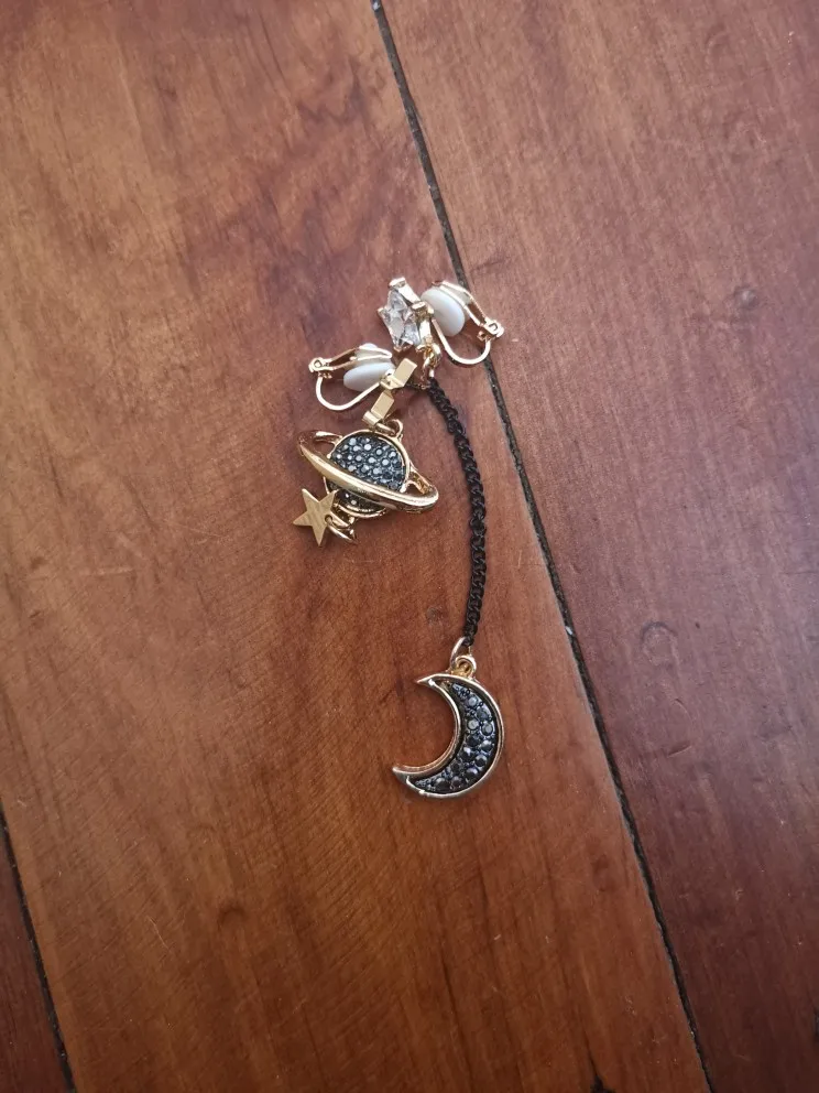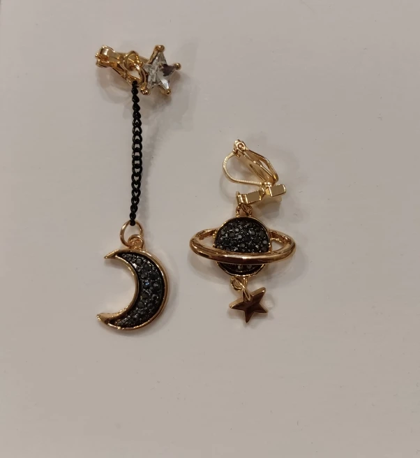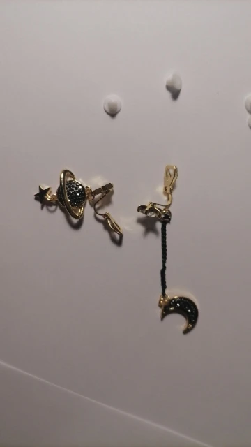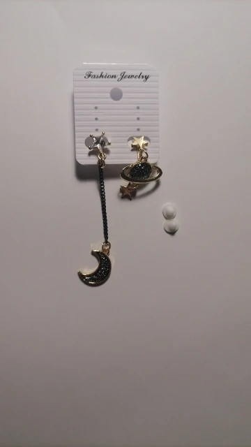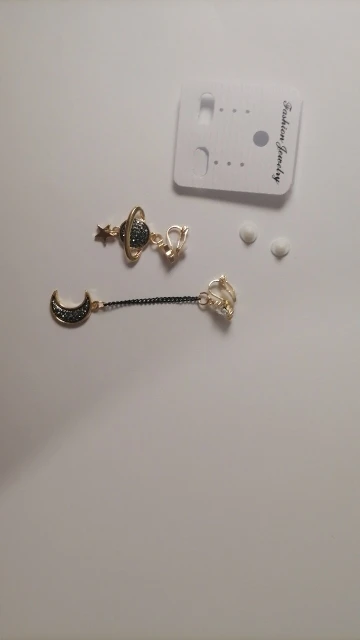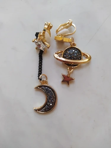 очень красивые, качественные, соответствует описанию, сделаны клипсами для тех у кого проколоты и непроколоты уши. есть мягкие накладки для мочек в двойном количестве подвеска в виде месяца висит обратной стороной приходиться все время попровлять