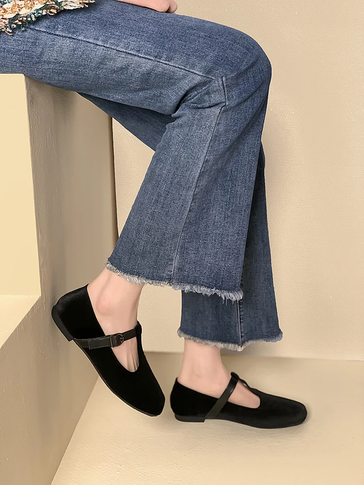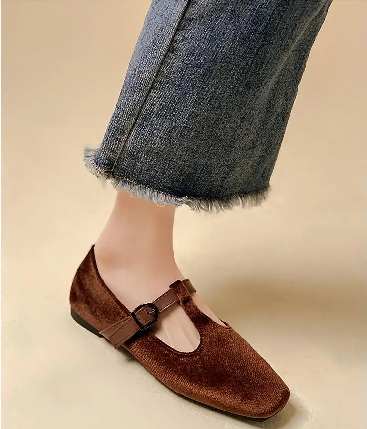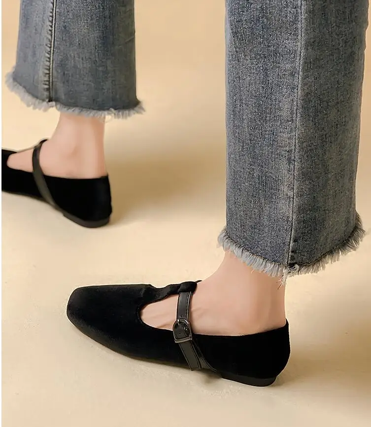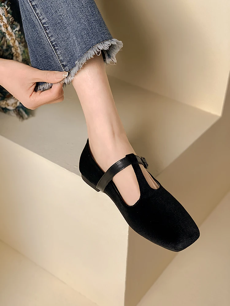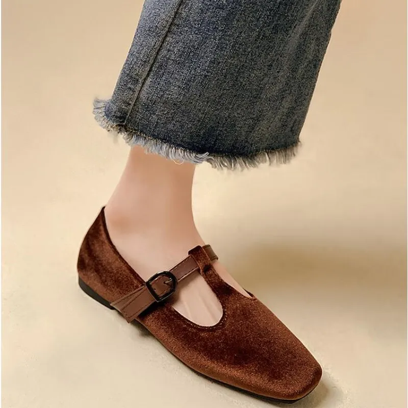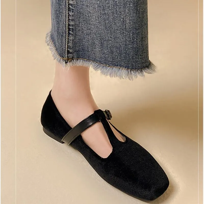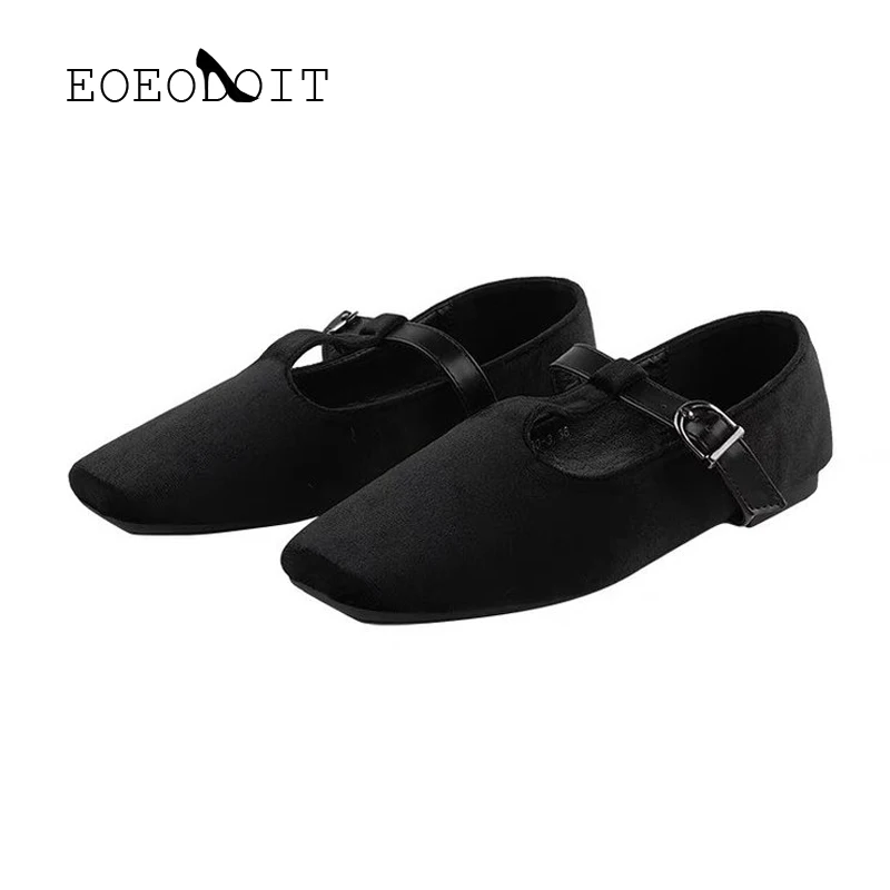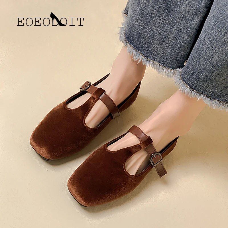 Кроссовки EOEODOIT женские на плоской подошве, повседневная обувь для отдыха, выходных, шоппинга, квадратный носок, T-образная пряжка, плоская подошва