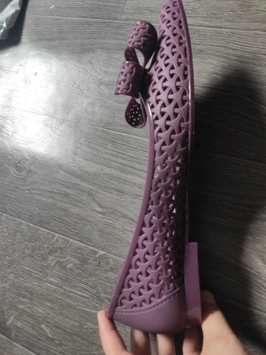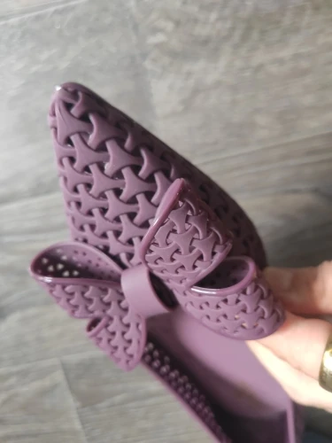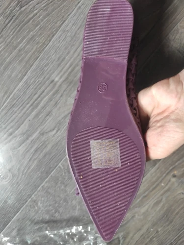 Заказ доставили быстро в одной посылке с другими товарами. Когда распаковала обувь, стоял сильный запах резины. Да, они резиновые с дырочками.Я почему-то перестаралась(наверное, напугалась острого носка) и на свои 24 см взяла размер 8,5.Они мне большие. А так в целом симпатичные, немного тяжëлые. Я довольна покупкой и доставкой. Спасибо магазину за отличный товар!