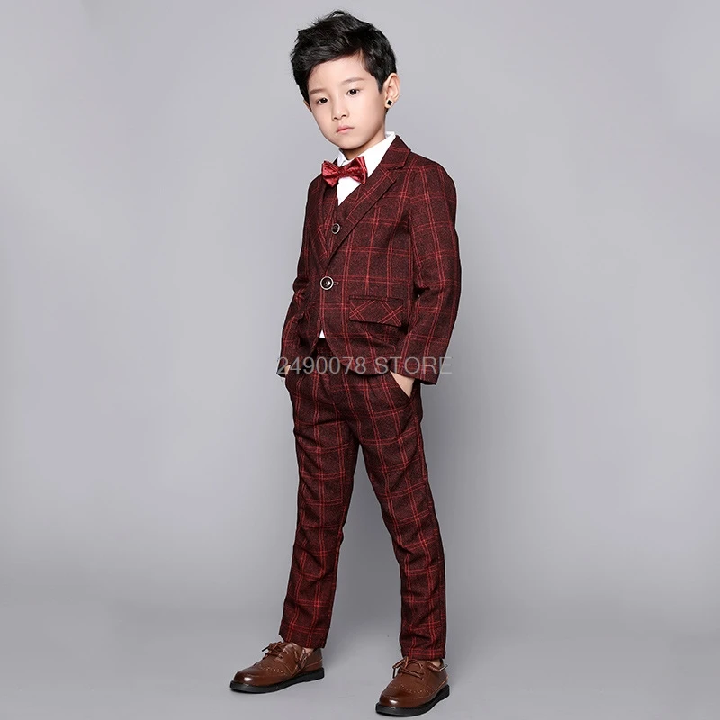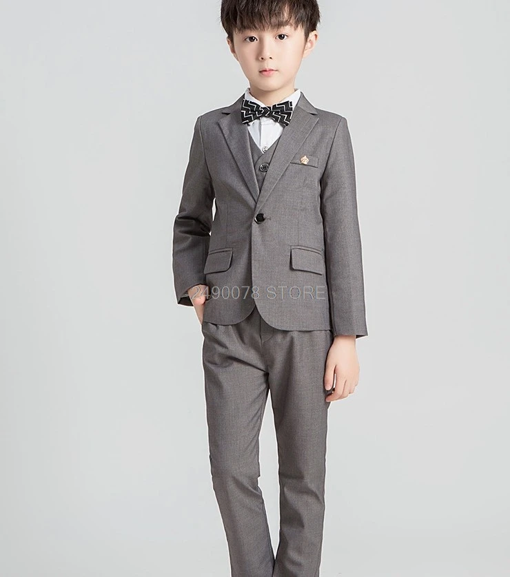 Детский костюм из жакета, штанов, галстука, смокинга на свадьбу, выпускного вечера, с цветами, для мальчиков, деловой костюм с пиджаком