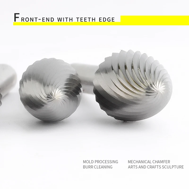Твердосплавный Металл Деревообработка резьба по дереву Шлифовальная головка с одним слотом Вольфрамовая сталь F-образная изогнутая круглая головка вращающаяся Расточная фреза