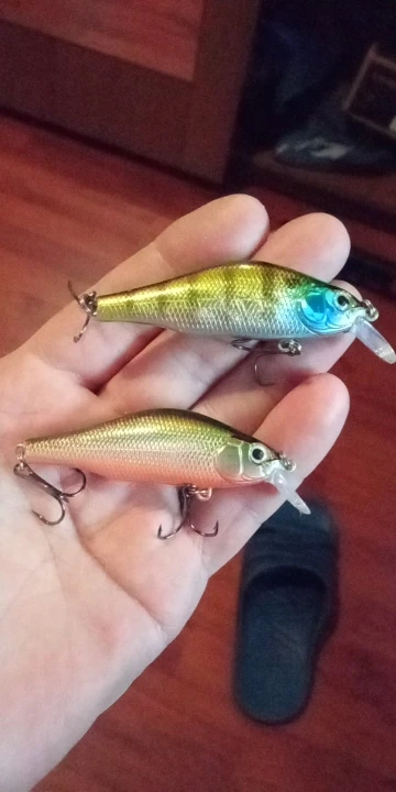 Воблер медленно всплывающий, шумящий, петли клеить(проверил в морозилке), крючки острые. Пришел за месяц.