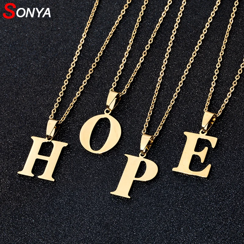 Мужские и женские ожерелья SONYA A to Z, колье из нержавеющей стали с надписью, золотоесеребристое ювелирное изделие с английской надписью