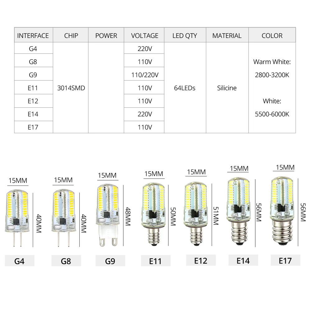 Диммирусветодиодный светодиодная мини-лампа-кукуруза G4 G8 G9 E11 E12 E14 E17, светодиодная Диодная люстра-прожектор с высоким световым потоком без мерцания 3000K 6000K