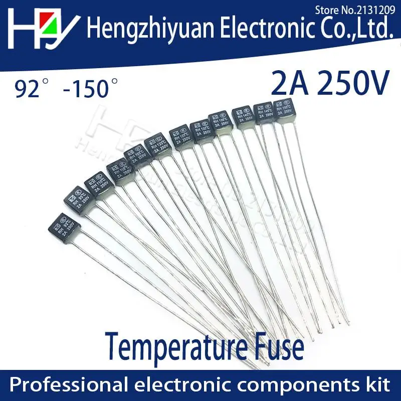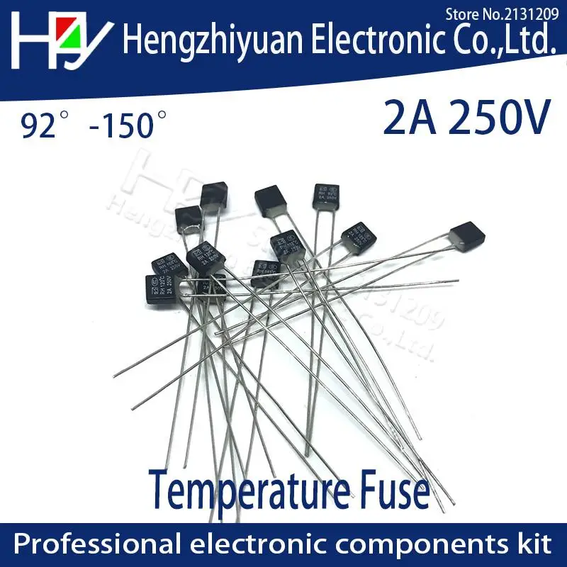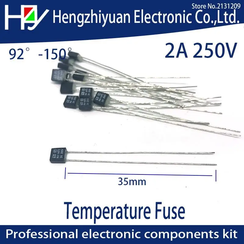 Термопредохранитель для электродвигателя вентилятора, 2 А, 250 В, 105, 110, 115, 120, 125, 130, 135, 140, 145 градусов, Температурный выключатель