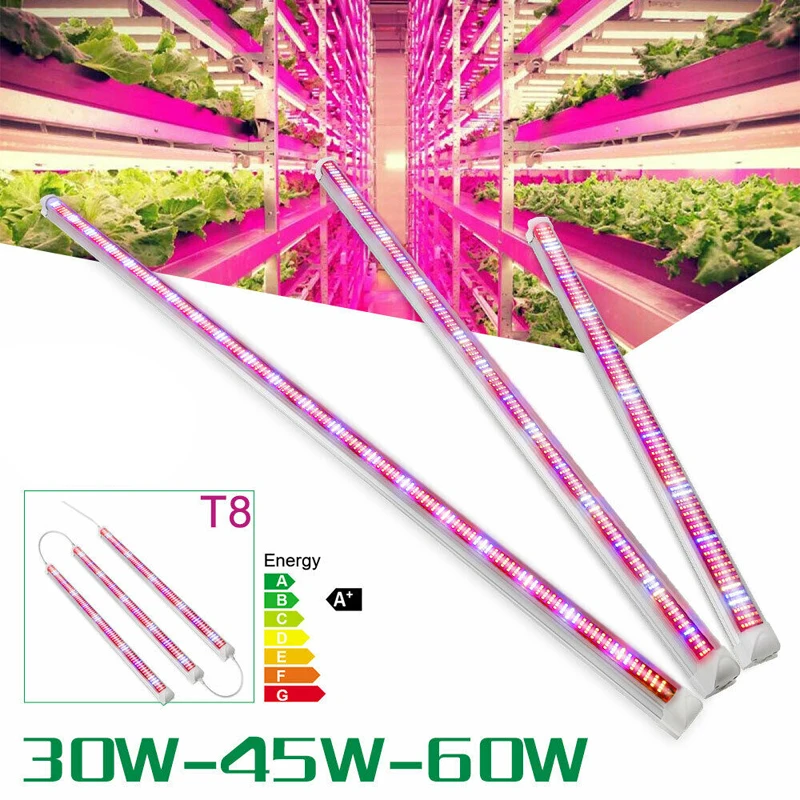 Светодиодный светильник T8 для выращивания растений, 3 шт., светодиодный светильник полного спектра для Гидропоника в помещении, аквариум для овощей, 45 Вт, 90 см, 60 Вт, 120 см