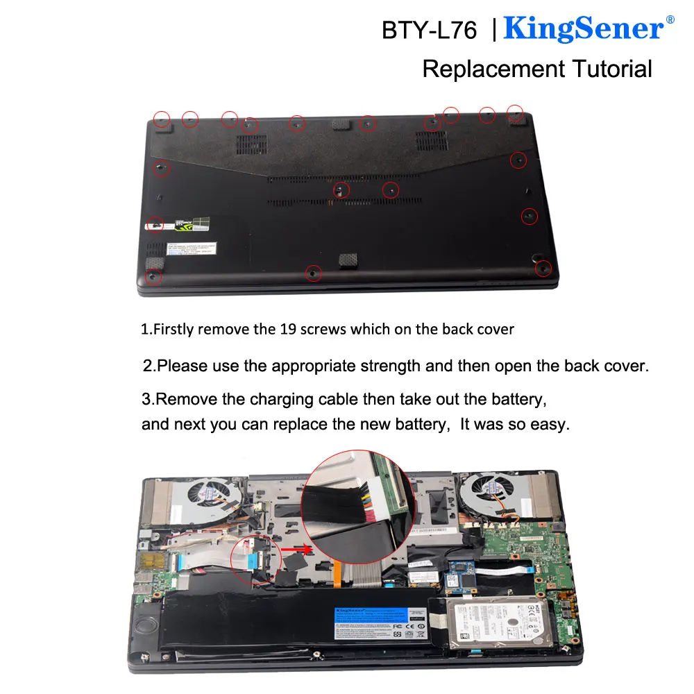 Аккумулятор KingSener BTY-L76 для ноутбука MSI GS70 MS-1771 MS-1772 MS-1774 2QC-019XCN, Medion Erazer X7615 X7613, 5400 мА ч