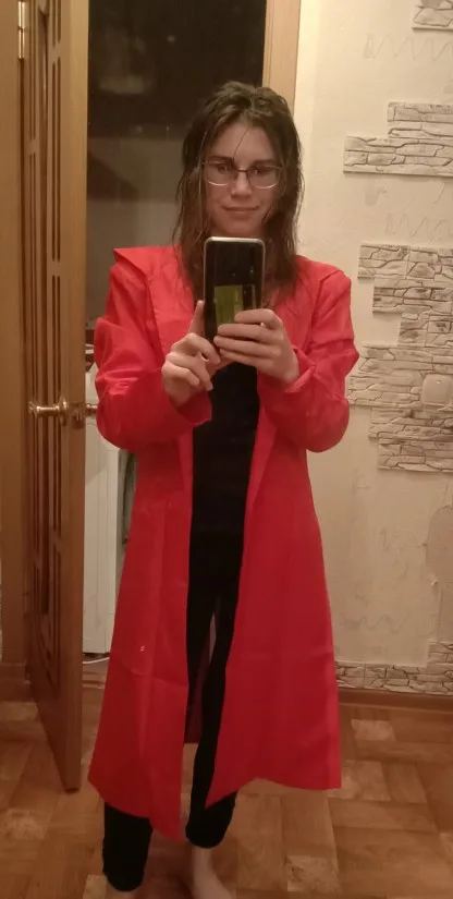 Плащ классный яркий единственное, думала он как пальто из плотной ткани, оказался тонким, ещё не очень удобно носить без карманов или пуговиц но это мелочи, мне очень нравится сам плащ.