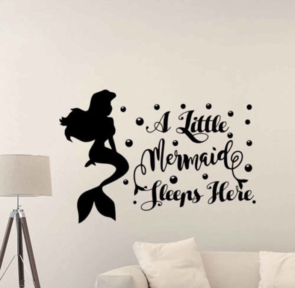 Настенные наклейки принцессы для девочек, декоративный виниловый для спальни, наклейки маленькой Русалочки для сна, цитата, Wal наклейки D624