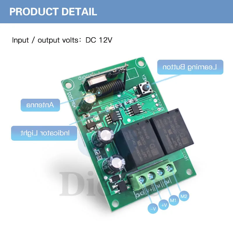 433 МГц Универсальный беспроводной пульт дистанционного управления DC 12 В 10A 2CH rf релейный приемник и 2 передатчика для дистанционного управления дверью/гаражом/переключателем двигателя