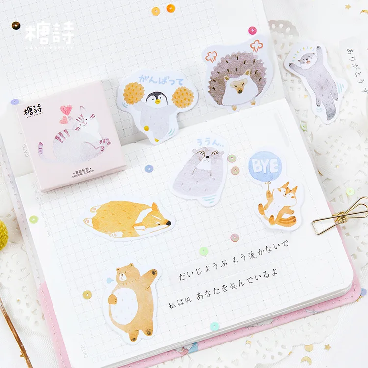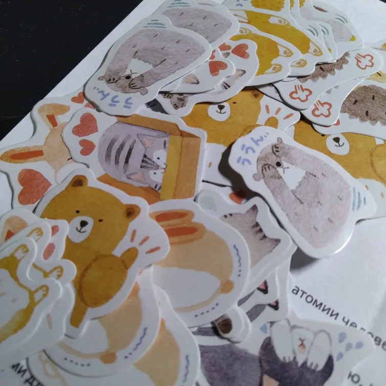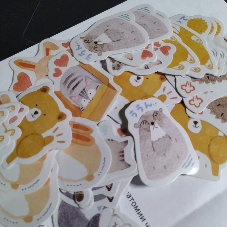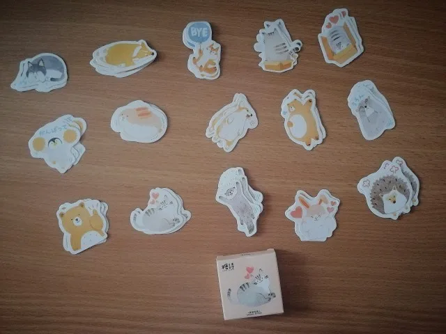 Красивые наклейки с медведями, кошками и другими милыми животными. Одна коробка содержит 15 узоров каждый из 3 штук, так что 45 в общей сложности. Заказал 15/10 и получил 4/11. Хорошо упаковывается со всеми заказанными товарами в один конверт с пузырьками. Не нужно общаться с продавцом