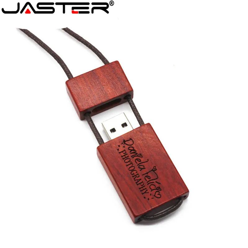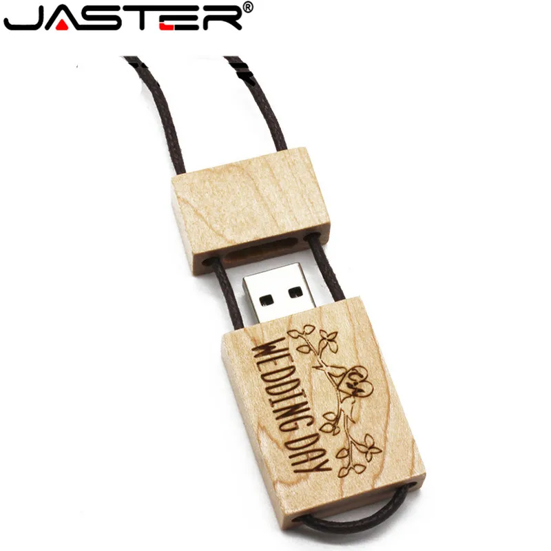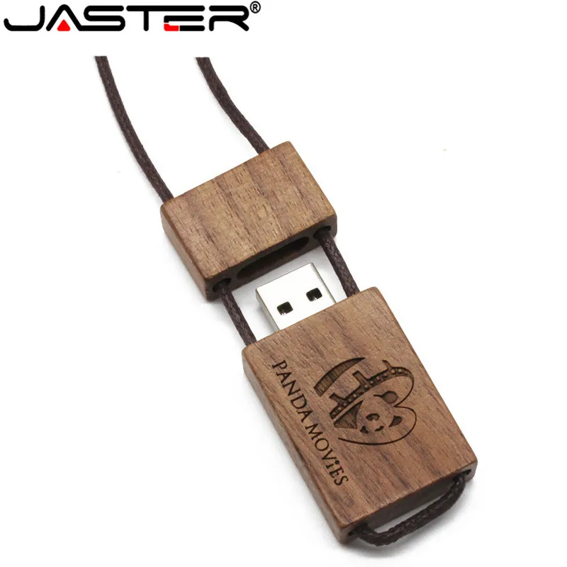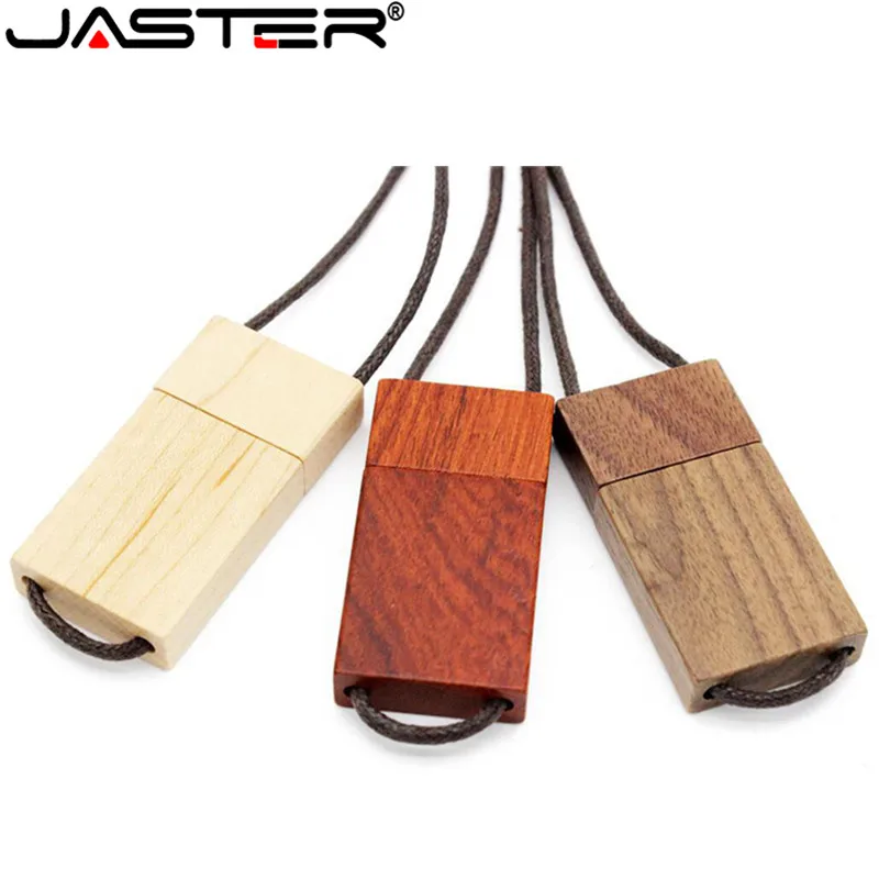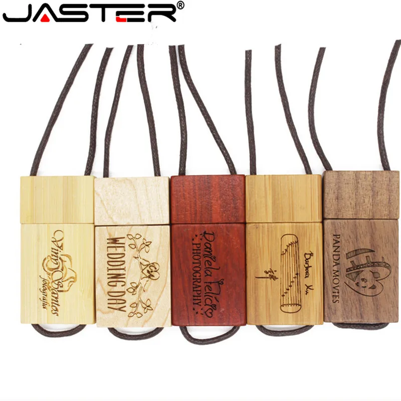 Деревянный USB-флеш-накопитель JASTER Lanyard, флэш-накопитель из красного дерева, 4 ГБ, 8 ГБ, 16 ГБ, 32 ГБ, 64 ГБ, Бамбуковая память, магнитная гравировка, свадебные подарки