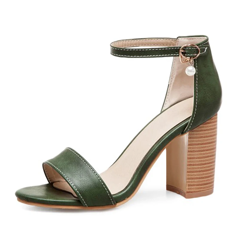 Meotinaлетние туфли женские сандалии обувь для вечеринок на высоком квадратном каблуке с жемчугом женские сандалии с ремешком на щиколотке и пряжкой, большие размеры 3-12