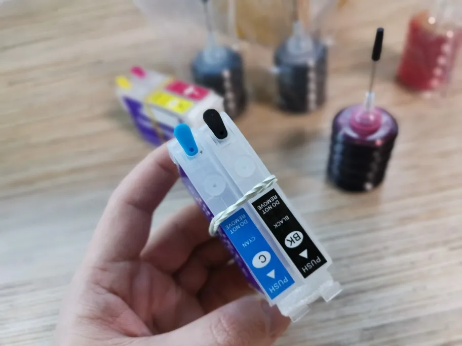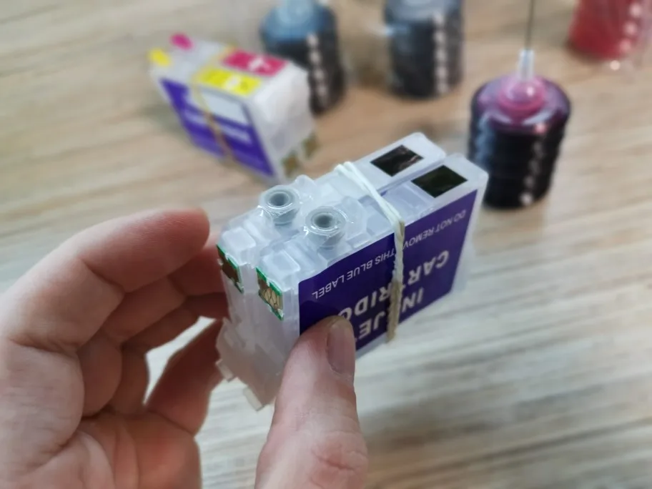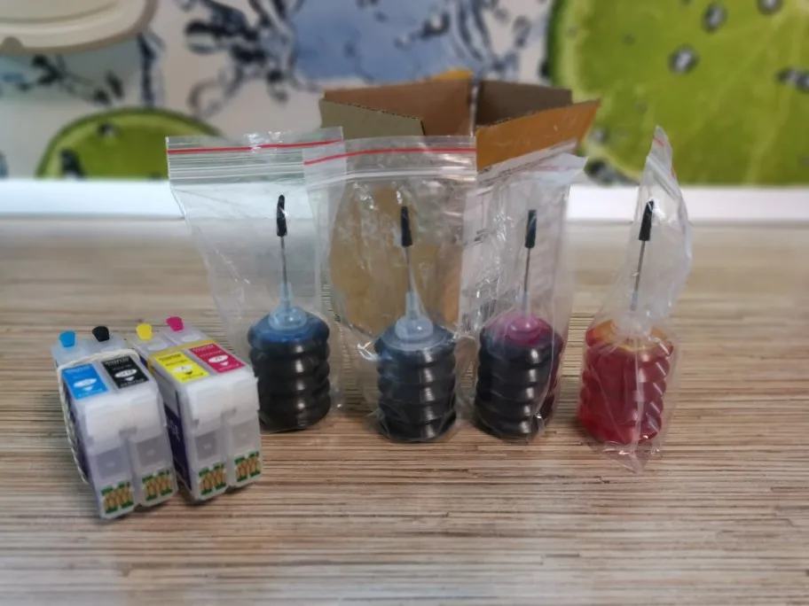 1 пустой перезаправляемый картридж с голубыми чернилами, совместимый с epson C (15 мл)1 пурпурный пурный пополняемый картридж, совместимый с epson M (15 мл);