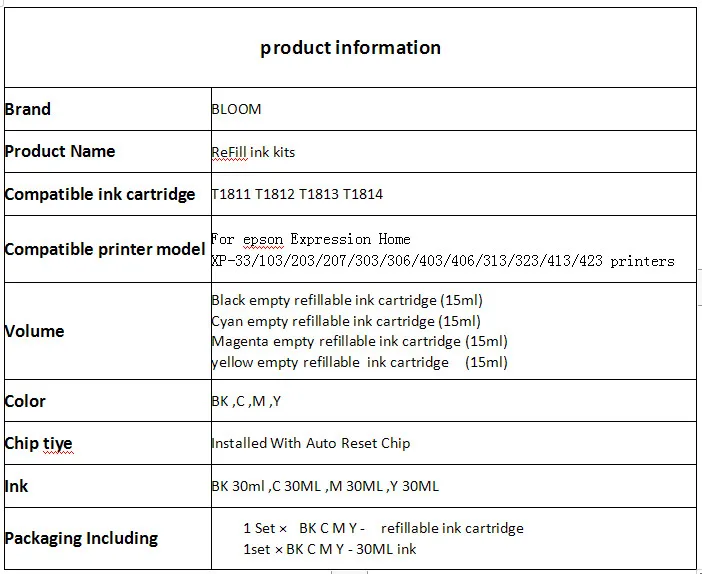 Номер моделиrefill ink kit for XP- 33 XP 103 203 207 303 306 403 406 313 323 413