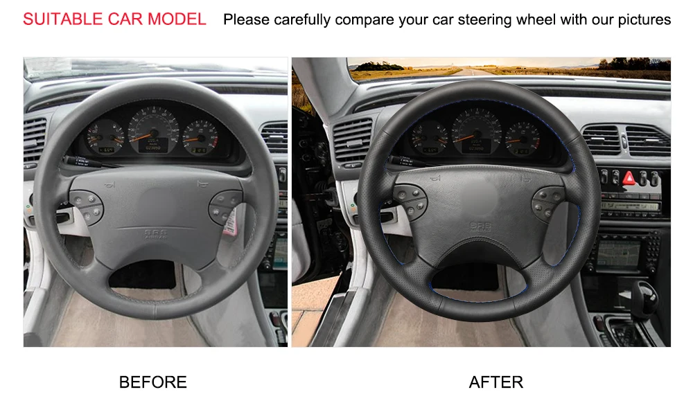 Черная искусственная кожа PU чехол рулевого колеса автомобиля для Mercedes Benz CLK-Class W208 C208 E-Class W210 G-Class W463 1999-2003