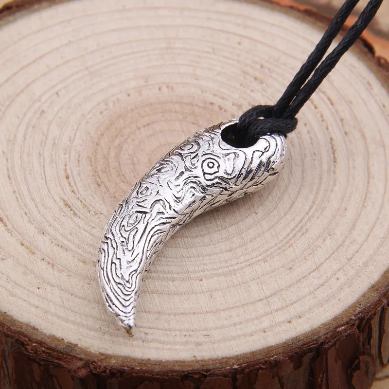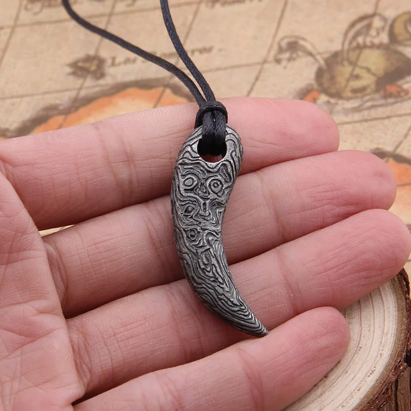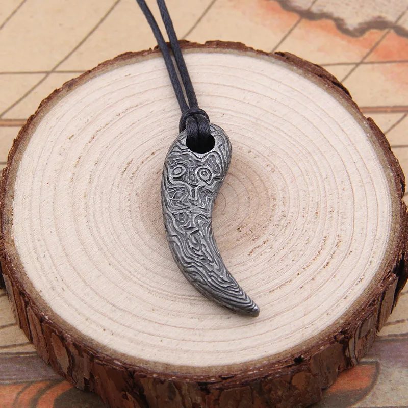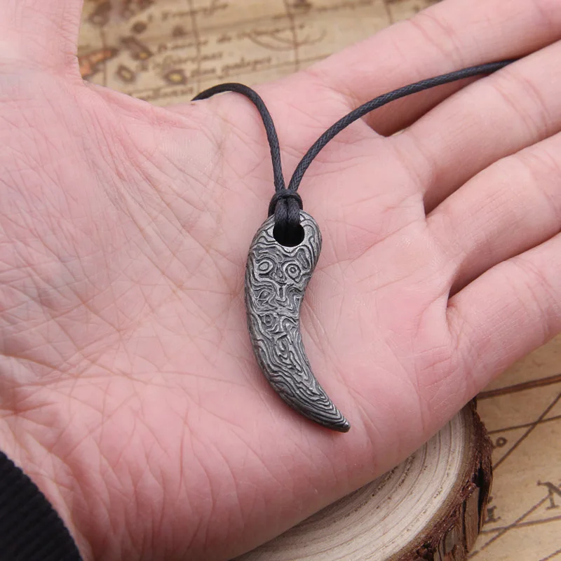 Прямая поставка, 1 шт., подвеска в стиле викингов из дамасской стали с зубом медведяволка, с ювелирным шнуром