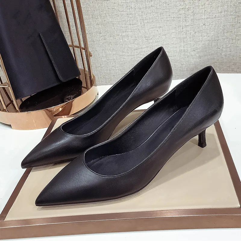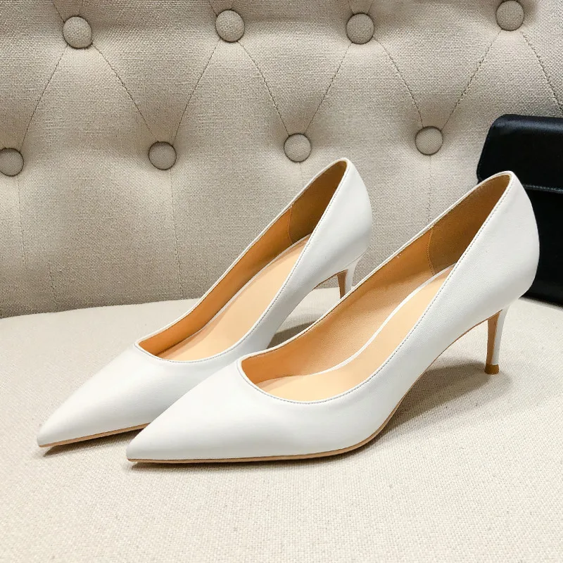 Туфли женские из натуральной кожи, свадебные туфли для невесты, на среднем тонком высоком каблуке, удобные офисные, для работы, черные, белые, B001