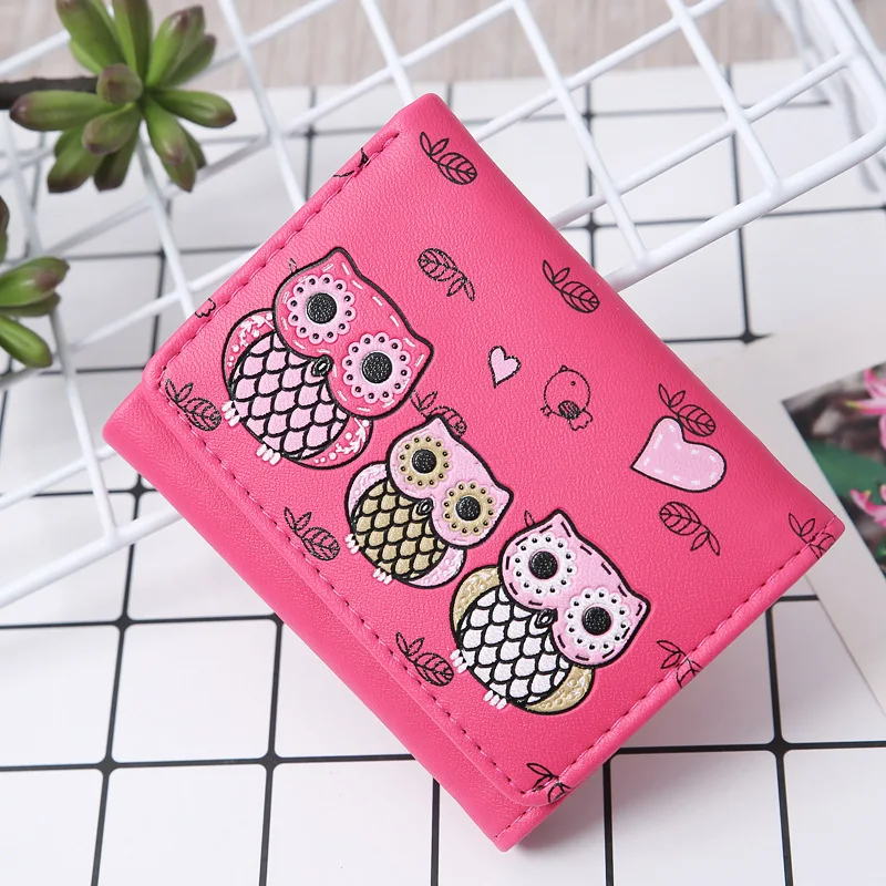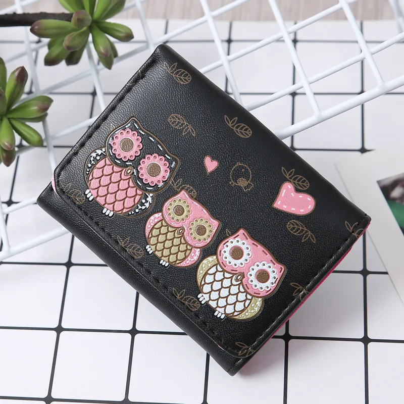 Мини-кошельки для женщин с принтом совы, кредитница из искусственной кожи на застежке с кармашком для мелочи, дамские сумочки для девушек, маленький бумажник