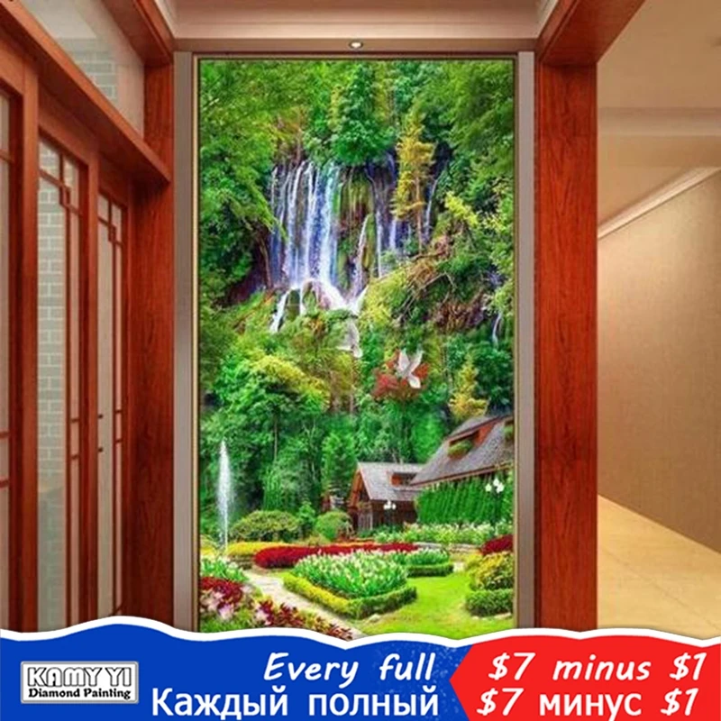 KAMY YI полностью квадратнаякруглая дрель 5D DIY Алмазная картина "дом на холме" вышивка крестиком Мозаика домашний Декор подарок HYY