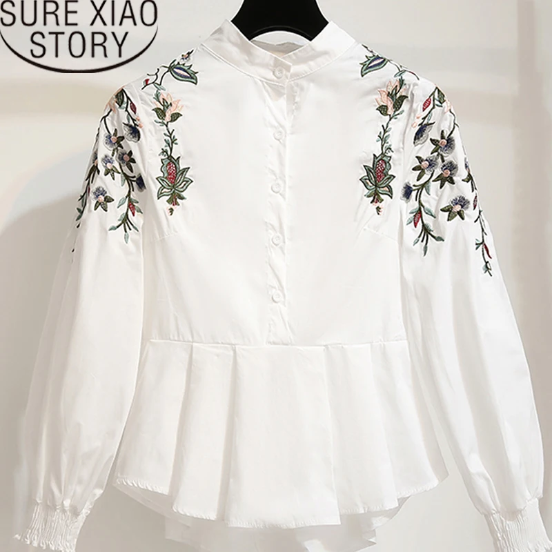 Корейская модная одежда 2019 женская белая рубашка блузка рукава одежда Длинные футболки, Дамские подставка топы узором 2807 50