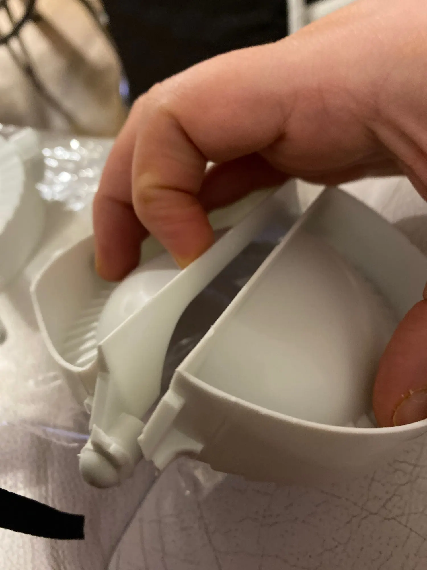 Две половинки не были вместе. Но пластиковые шпильки плавали в пакете для доставки, поэтому я смог сложить их вместе, чтобы он мог работать. Я ожидал, что товар будет завершен по прибытии.