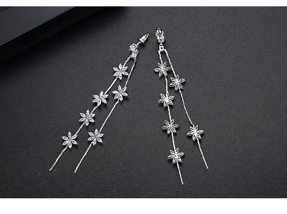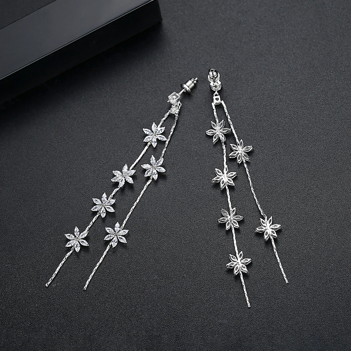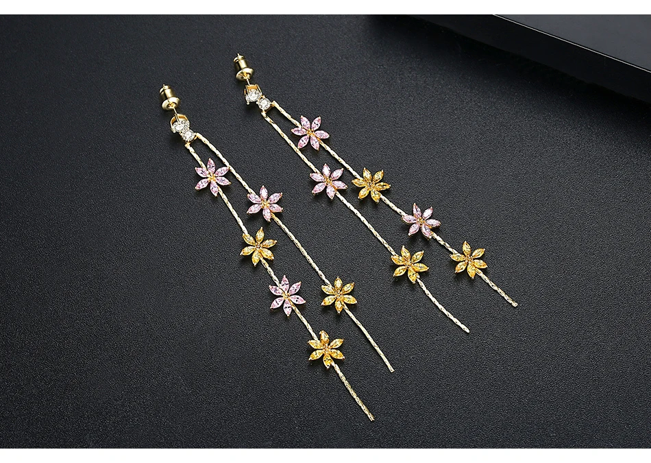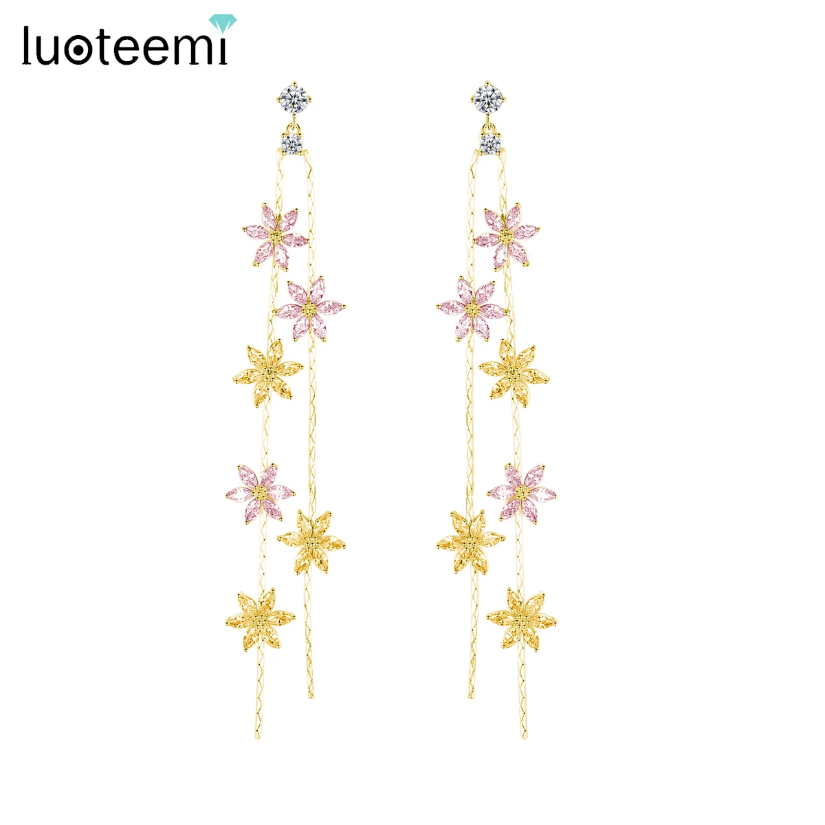 LUOTEEMI милые белые розовые цветочные длинные висячие серьги с кисточками для женщин девушек Свадебная вечеринка выложены AAA + фианиты висячие серьги