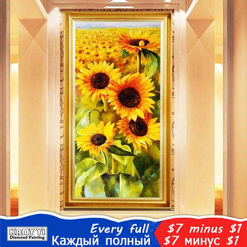 Алмазная 5D картина KAMY YI, вышивка с квадратнымикруглыми стразами, подсолнухи, мозаика для вышивки крестиком, украшение для дома, подарок