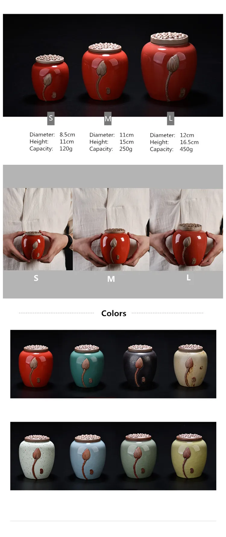 Банки для хранения чая в китайском ретро-стиле, мини-сахарница с крышкой и рисунком лотоса, банка для конфет, бутылка для кухни, керамическая банка для специй