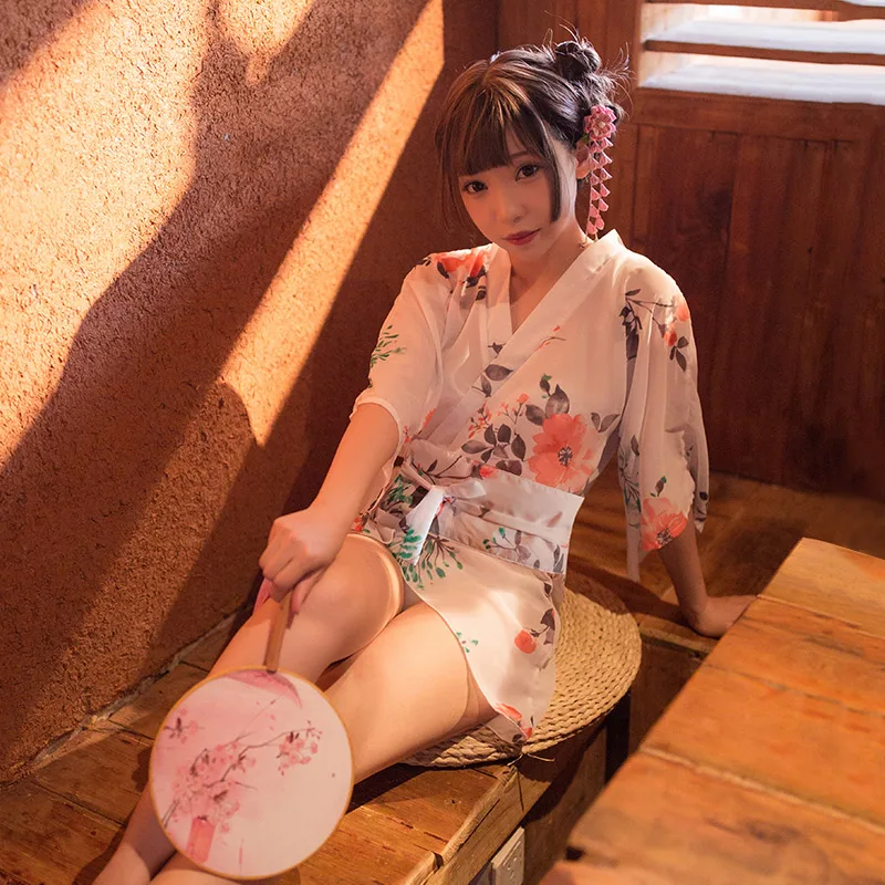 Yhotmeng 2019 Новое пикантное кимоно с принтом шифоновая японская женская ночная рубашка на бретельках с Т-образным вырезом комплект нижнего белья