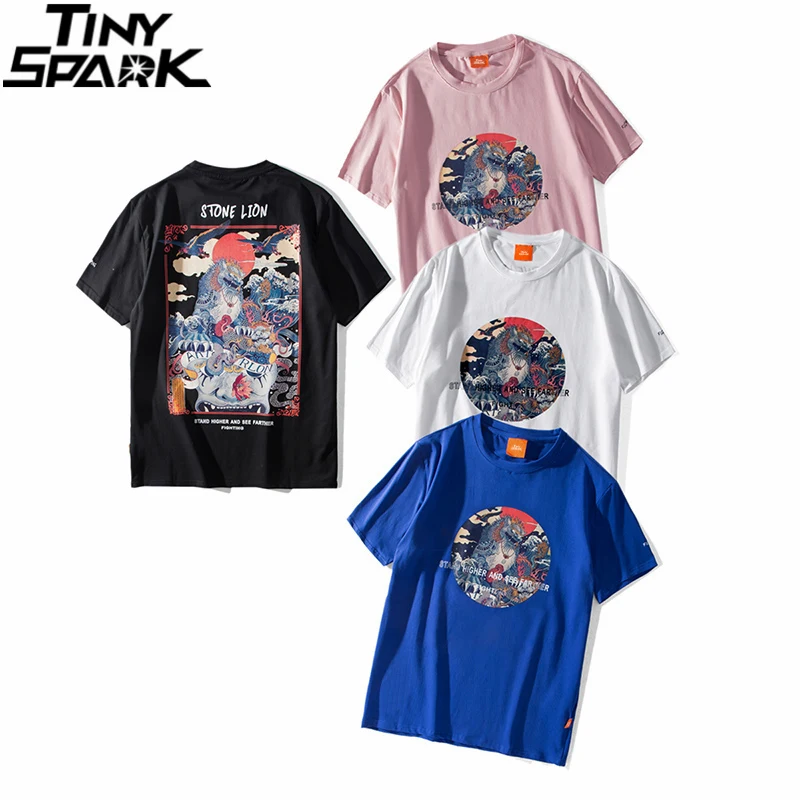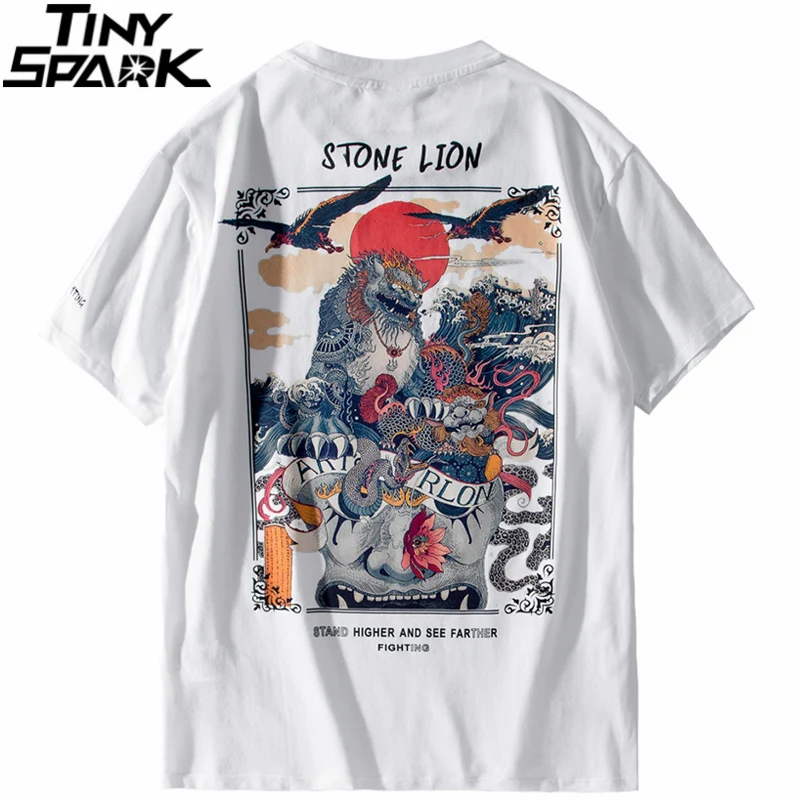 2021 Харадзюку Футболка Мужская Хип-Хоп футболка каменный Лев китайская уличная летняя футболка с коротким рукавом Хлопок топы тройники хипстер Новый