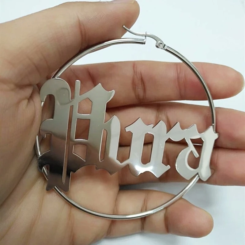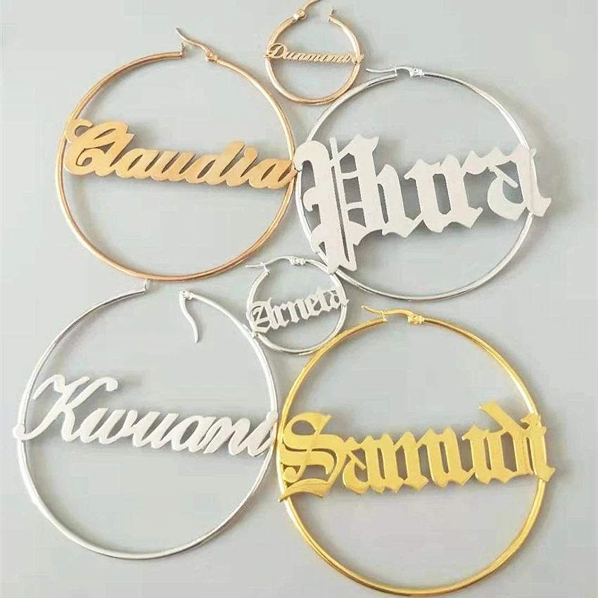 1 пара 80 мм Круглый Круг пользовательское имя серьги гвоздики для женщин именная табличка персонализированные нержавеющая сталь Pendientes ювелирные изделия ручной работы