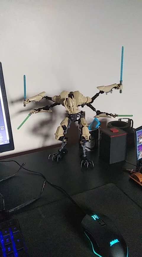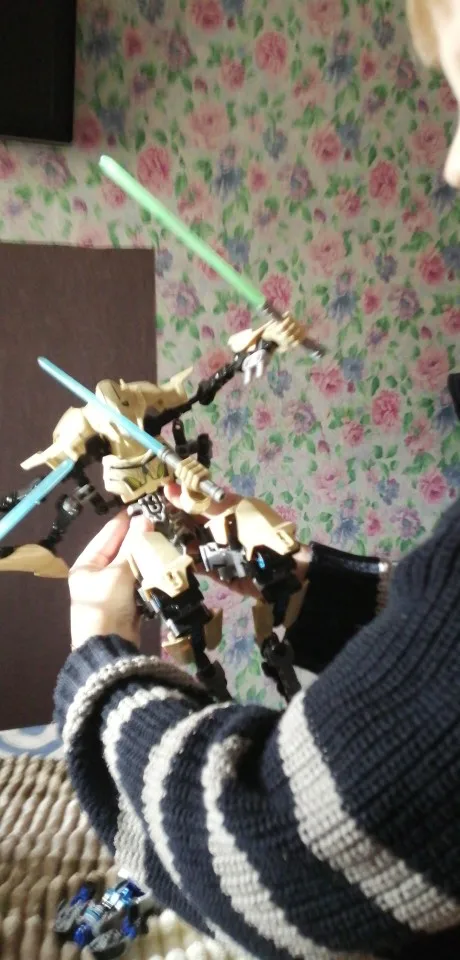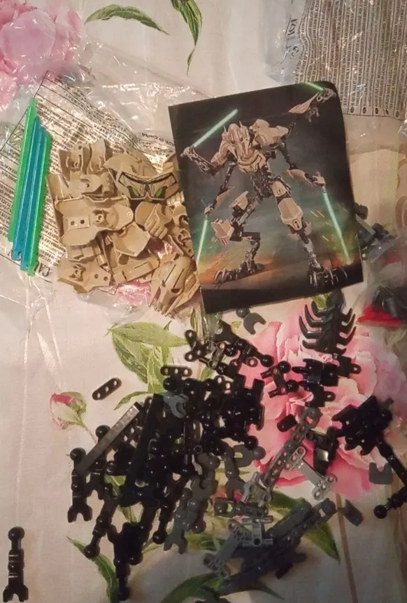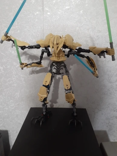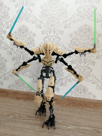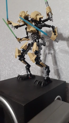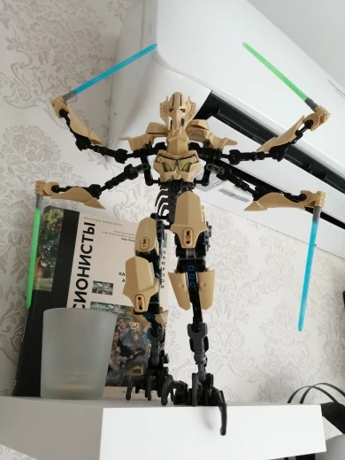 Быстрая доставка! Меньше недели до Краснодара (отправление было со склада в России). Качество на 4 (некоторые шарниры садятся и двигаются туго, другие наоборот слишком свободно, одна деталька попалась сломанной, но на конечный результат это не повлияло), осталось немного лишних (или запасных) деталей. Сам Гривус большой, хоть и знал размеры, но думал что будет меньше. Собрал быстро. Рекомендую. Буду заказывать ещё)