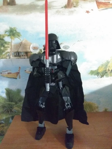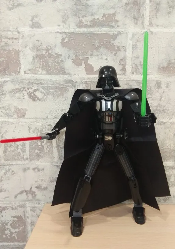 качество пластика за свои деньги более чем хорошее. брали в коллекцию к оригинальному Вейдеру от Лего - хлипкость конструкции та же.