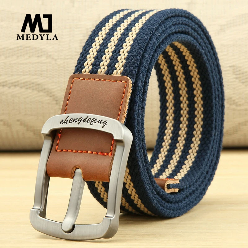 Холщовый ремень MEDYLA, мужской ремень с пряжкой из сплава в полоску, повседневный ремень для джинсов, женский, Молодежный, Качественный ремень для улицы, MD813