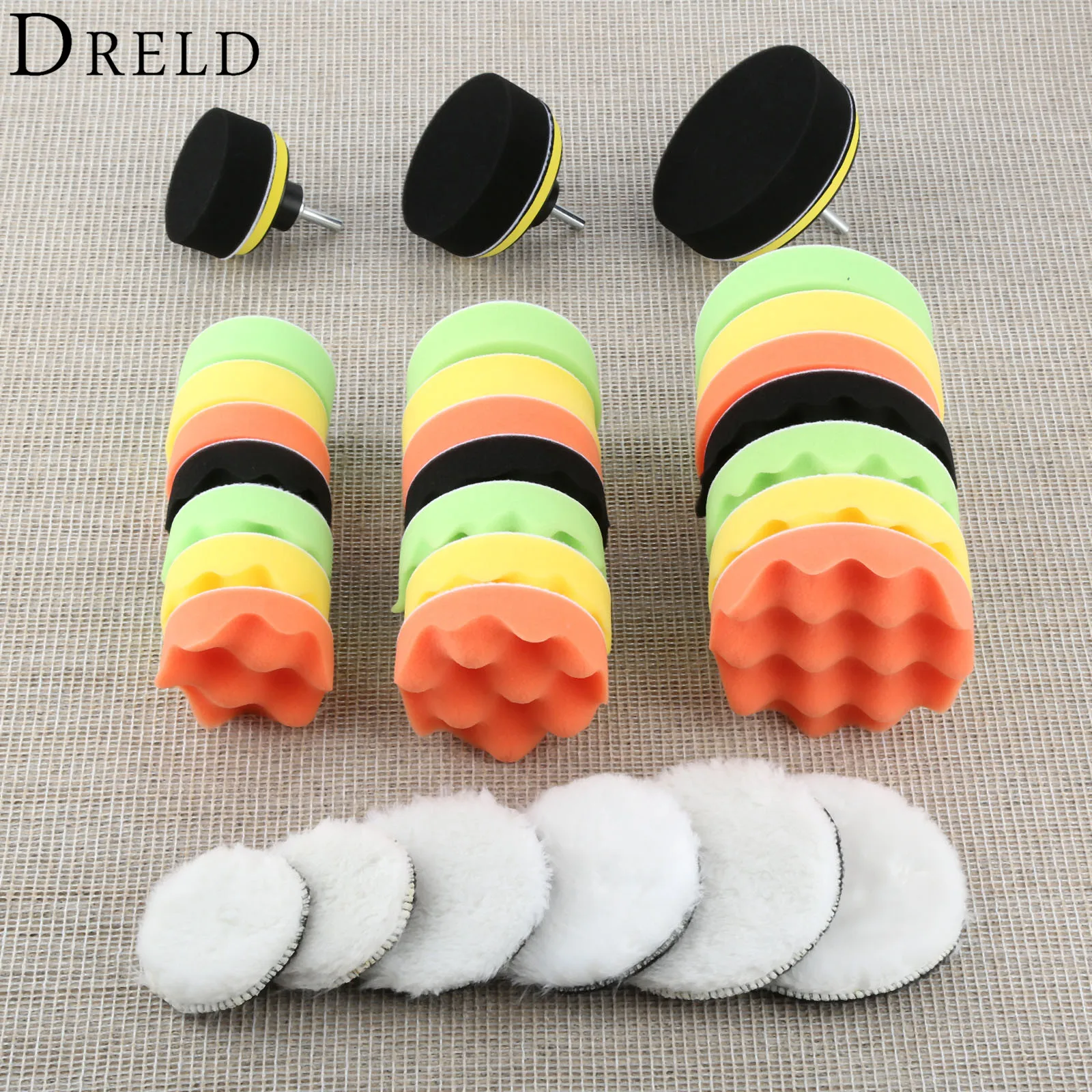 DRELD 12 шт. 345 дюймов, автомобильные полировальные колодки, губка, полировальная колодка, набор для автомобиля, полировщик с переходником для дрели M10, инструмент для очистки
