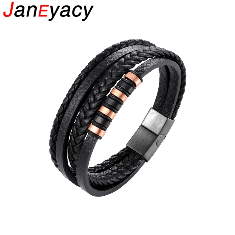 2019 новый модный браслет из натуральной кожи, мужские браслеты из нержавеющей стали, многослойная плетеная веревка цепочка для мужчин, классические украшения