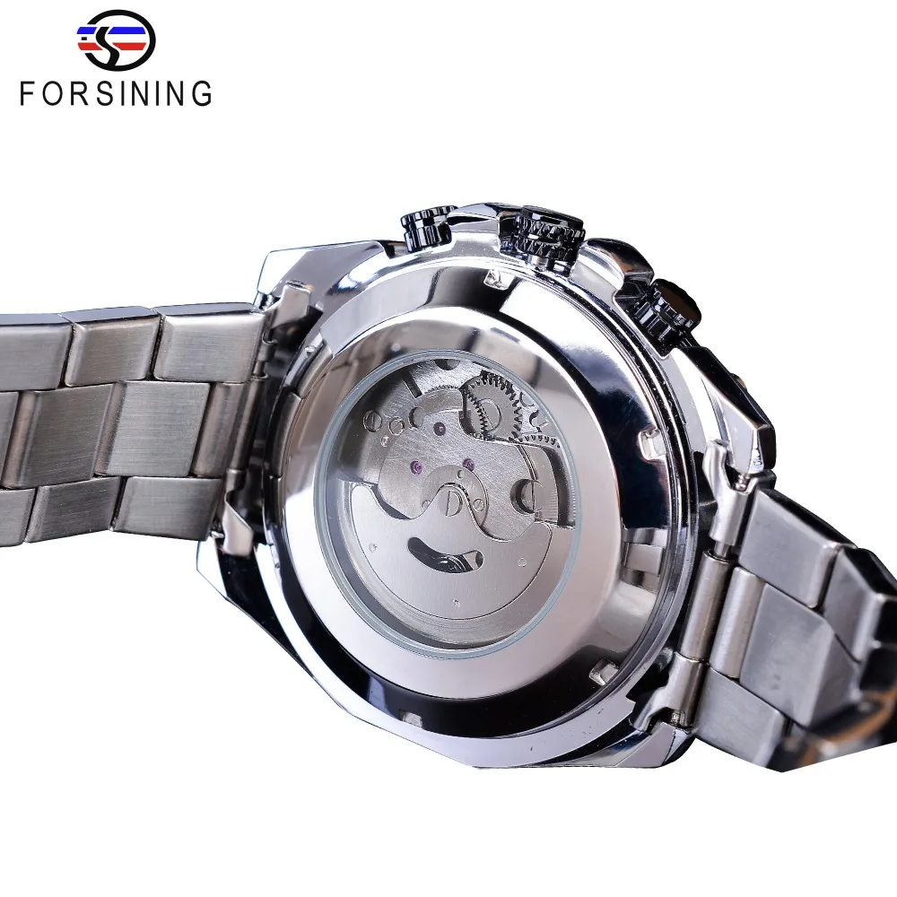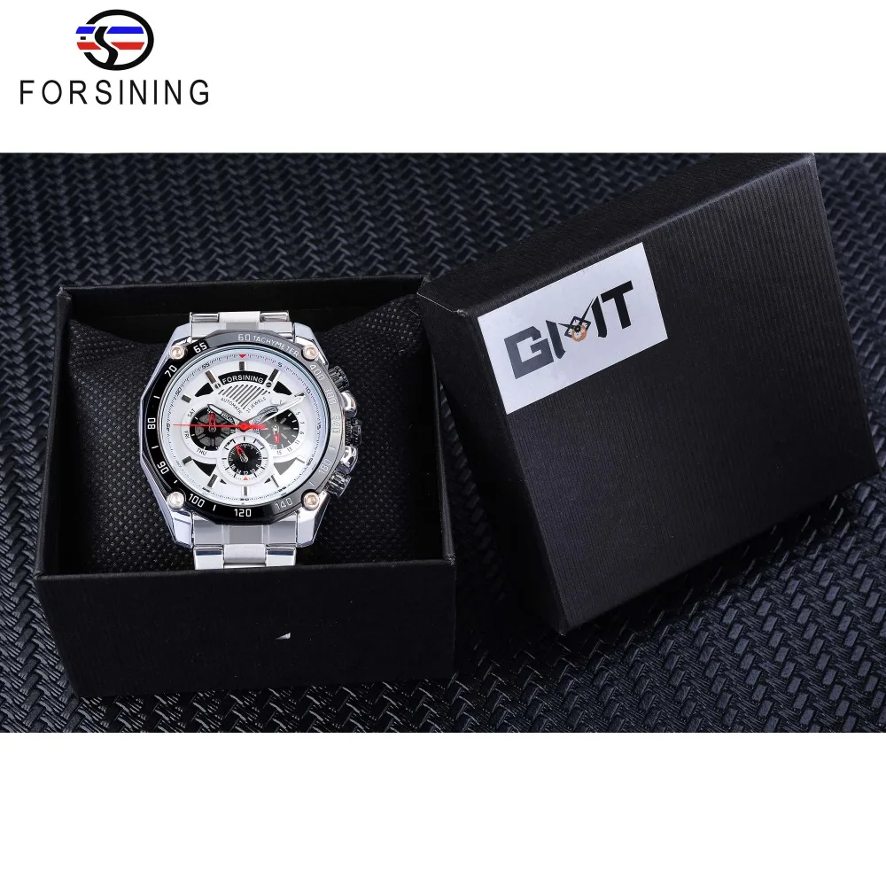 Часы наручные Forsining Мужские механические серебристые, спортивные автоматические брендовые люксовые в стиле стимпанк, с полным календарем, 2019