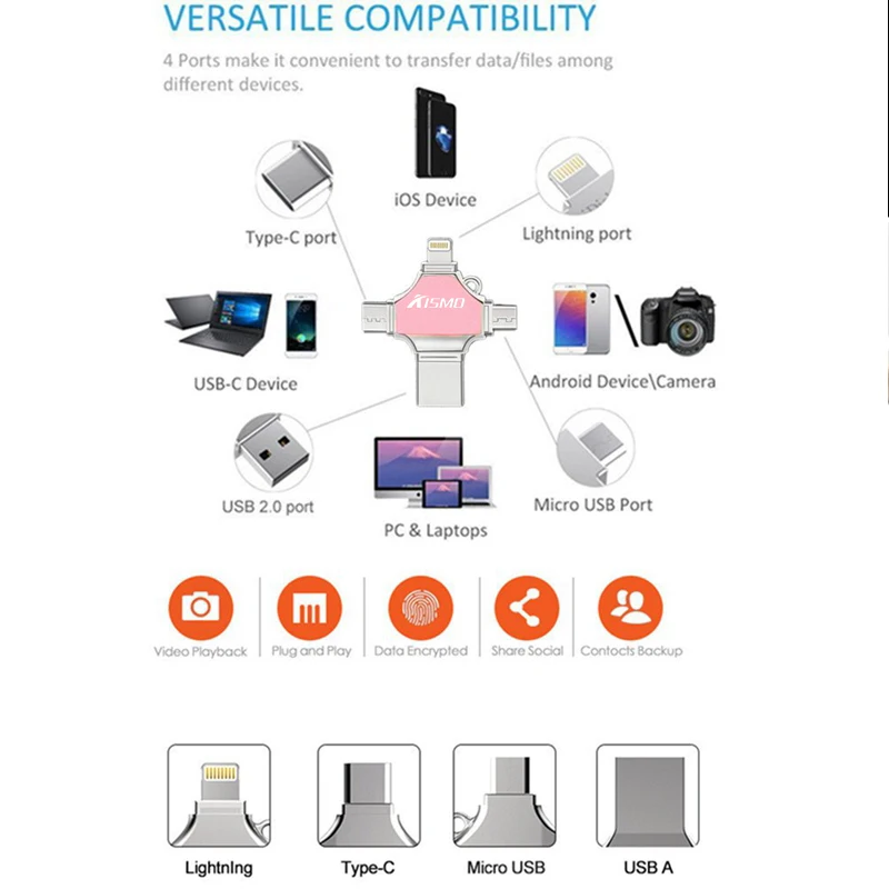 Function4 in 1 usb flash drive ( iPhone, Micro_USb, TypeC and computer