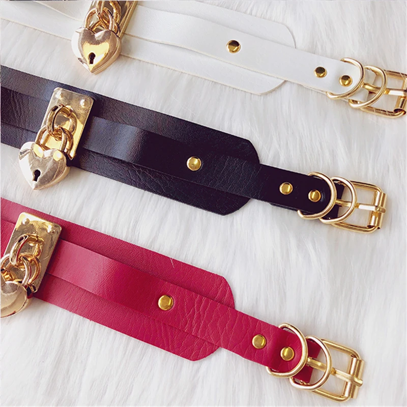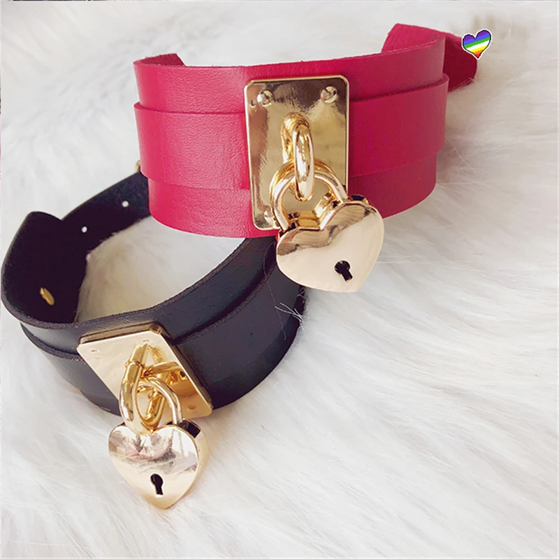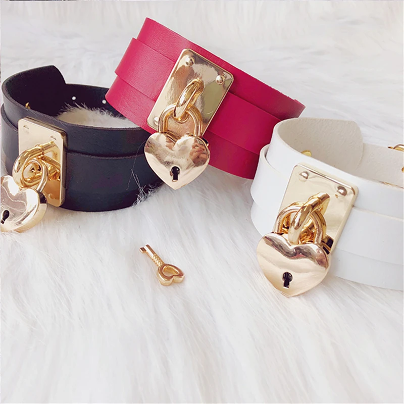 Женский ошейник в стиле Харадзюку ручной работы с замком в форме сердца и ключом золотистый кожаный ошейник чокер бондаж для БДСМ фетиш ошейник секс-игрушки